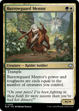 《穴ぐら守りの導師/Burrowguard Mentor》[BLB] 金U
